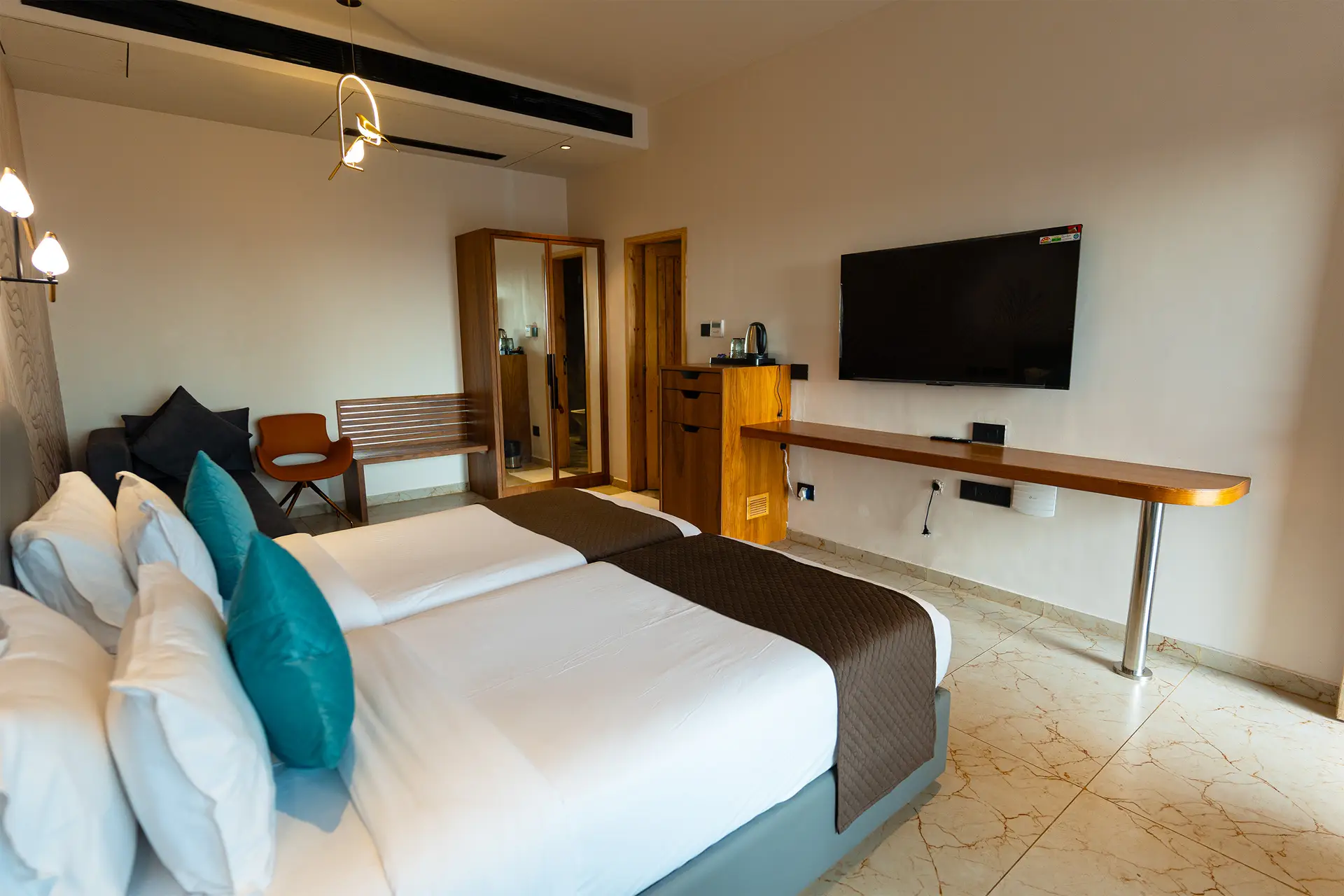All our Deluxe Twin Bed rooms have big windows to help you take a broad view of the beach and nature from the ground floor. We offer bigger bed and every bathroom has bathtub and shower, which brings relaxation to you after a long day.