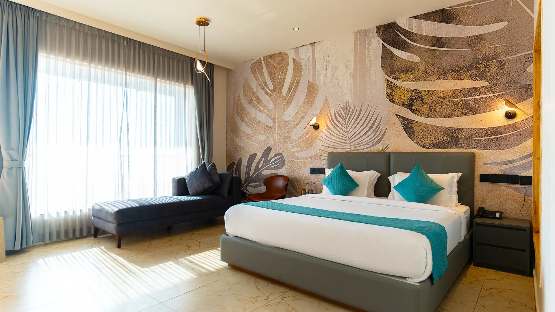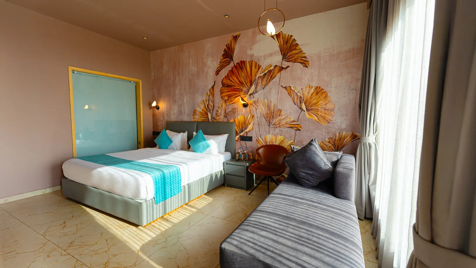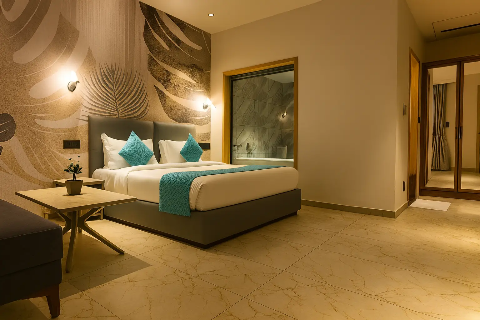 Indulge in oceanfront luxury at our Premium Deluxe Room on the first floor of Le Sparrow Beach Resort villa, Mangalore's premier beachfront property. Wake up to stunning Arabian Sea views from your private balcony, perfect for sunset watching.